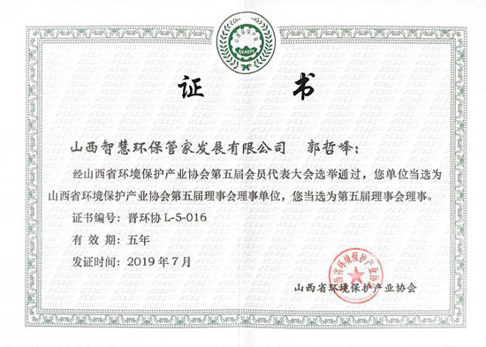 山西省環(huán)境保護(hù)產(chǎn)業(yè)協(xié)會第五屆理事會理事